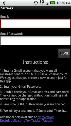 Overview: Text Tracker will monitor incoming and outgoing text messages and phone calls. It will forward a copy of all activity to your Google email account. It takes just a couple of minutes to set up.